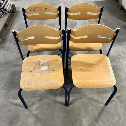 3 stk. Højde kan indstilles fra ca. 53 cm til 80 cm, så kan bruges som barstole. Har alt hvad en brugt folkeskolestol fra 9.B. kan trække af brugsmærker, men kan blive flotte efter en slibning og lak på træet. Prisen er for dem alle.