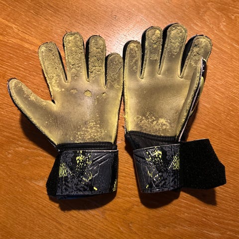 Vores søn har været fodboldmålmand, men er stoppet. Desværre havde han nået at få nye målmandshandsker, som aldrig har været brugt. Original emballage osv. Det er størrelse 7,5.