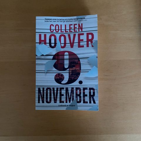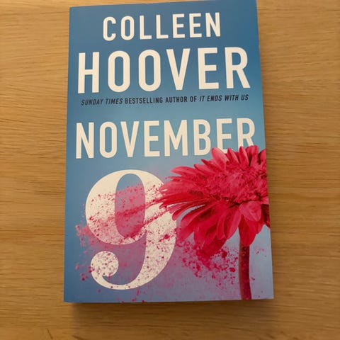 Colleen Hoover - November 9. Bogen er på engelsk. Købt i boghandler og kun læst 1 gang, så fremstår i god stand. Kan hentes i Hørsholm eller på Østerbro, hvor jeg arbejder.