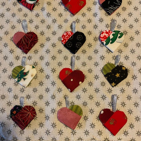 Hjerter, dekoration. Blandet, 4 slags. 41 stk. Man limer dem på. Fast pris