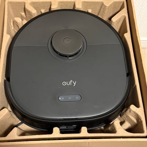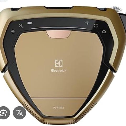 Kompakt, effektiv robotstøvsuger. Trekantet form for effektiv adgang til hjørner. Udstyret med børster og sensorer til navigering og rengøring af forskellige gulvtyper.