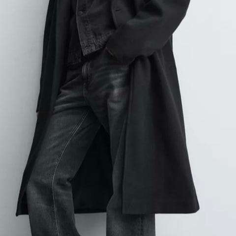 Zara Frakke i beige farve, størrelse S til mænd. Fremstillet i blødt teddy-materiale med knaplukning foran og krave. Velegnet som yderbeklædning til køligere vejr.