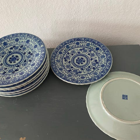 Kinesisk porcelænstallerken med traditionelt motiv