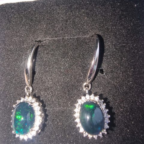 Meget smukke ørestikker med fine blålige australske opaler - de har en fantastrisk spil - designet specielt til mig i 90'erne. Sat i 14 karat guld. De er brugt meget lidt og fremstår derfor i super stand