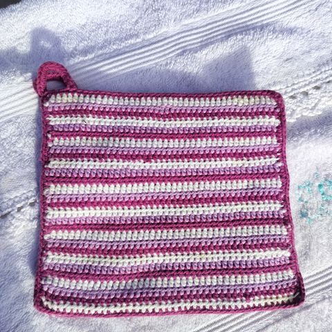 Grydelapper, Hæklede, 2 retro grydelapper. Hanken er knækket på begge så de kan ikke hænges op.