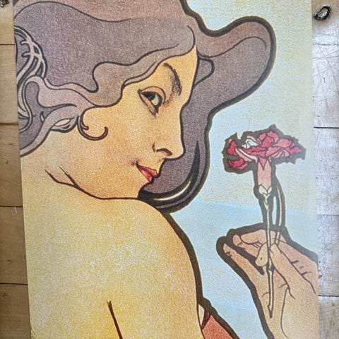 Billede, - SIDTE CHANCE - FAST PRIS. Motiv af Mucha sælges (sælges med ramme).