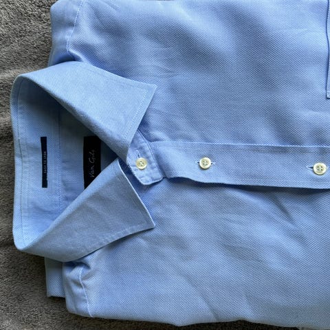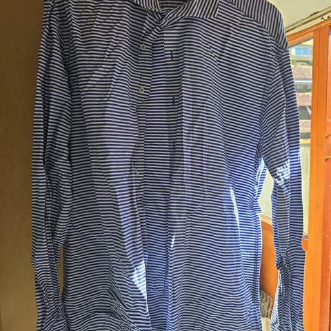 Skjorte. Er i rigtig flot stand, dog nogle få mærker i kraven som ikke ses når den er på, flot skjorte til hverdag og fest.