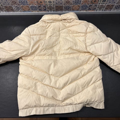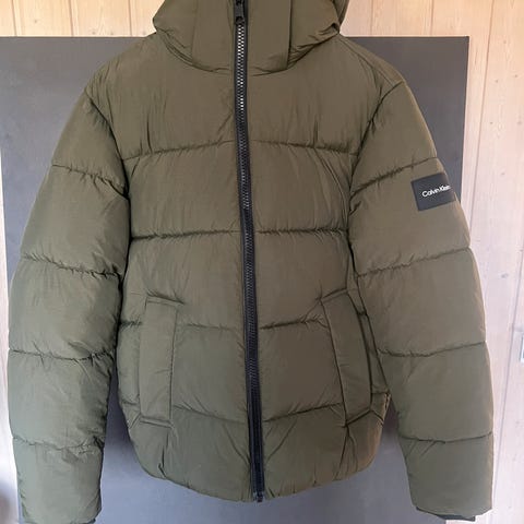 Jakke, Calvin Klein, str. 176, Super smart jakke i olivengrøn og med guldlynlås og CK logo. Det er en str. medium og den er i super fin stand.