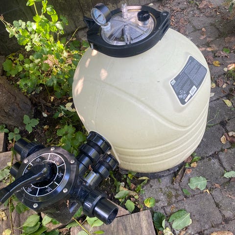 AL-KO Forfilter for husvandværk med 1" gevind. Har været tilsluttet for test, men straks afmonteret da vandet var uden større partikler.