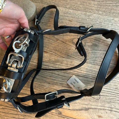Har kun været brugt begrænset på en pony. Har hængt i opvarmet saddelrum og er altid blevet pudset efter brug.