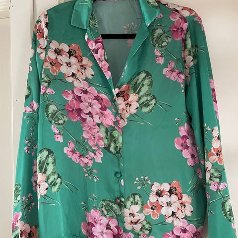 Mango suit skjorte i lyseblå med hvide striber i størrelse S. Skjorten har lange ærmer med knapper ved manchetterne og en klassisk krave.