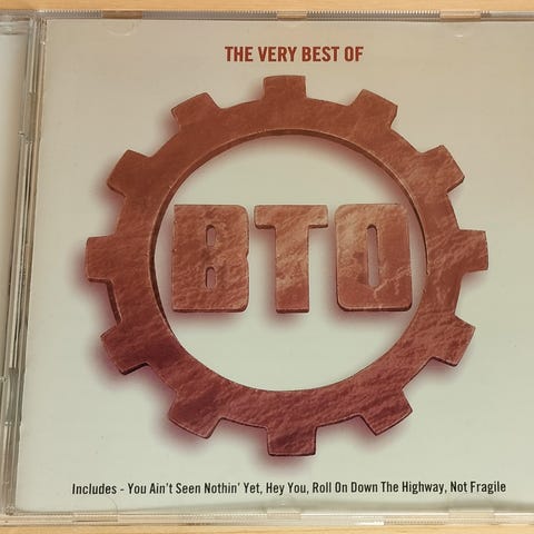 Bachman Turner Overdrive CD musikalbum med flere sange. Indeholder original CD og cover med information om spor og kunstner. Velegnet til samlere eller musiklyttere.