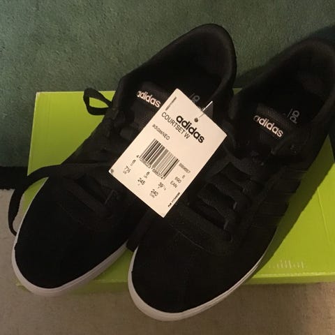 Super sko fra Adidas i str 44 2/3. De er i meget god stand og blev ikke brugt meget. Dette kan ses på billederne og sålen. Sælges pga. strørelsen.