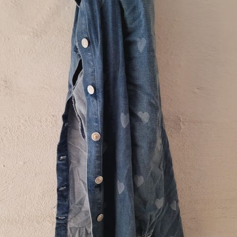 2 lommer med lynlås og længden er ca 3/4 i forhold til mig ( højde 165 ).