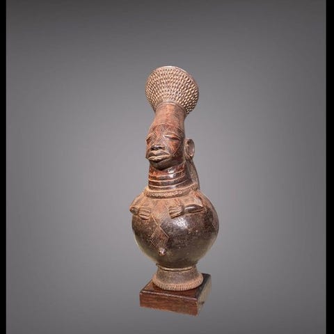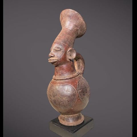 Mangbetu-skulptur (40 cm) på sokkel - Statue Mangbetu, cruche - Mangbetu - DR...