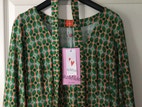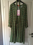 Stadig med tags :) Smuk smuk kjole i grønne nuancer fra danske Du Milde str XXL - model Githa/diGitha. Materialet er 92% viskose og 8% elestan, hvilket sikrer en super pasform. Kjolen kan bruges både med og uden det medfølgende bindebælte - personlig bruger jeg modellen uden bælte.