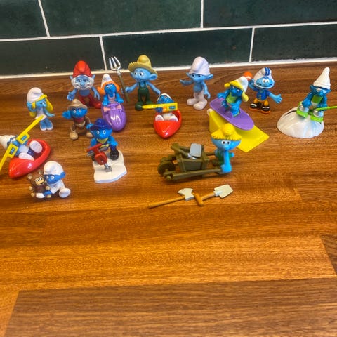 Smølf og smølfine i tenniskamp. Er begge originale med stempler. Lidt brugsspor og maling pletter (sikkert fra produktionen). Er intakte. Sælges til 30 kr/stk eller begge for 50,-.