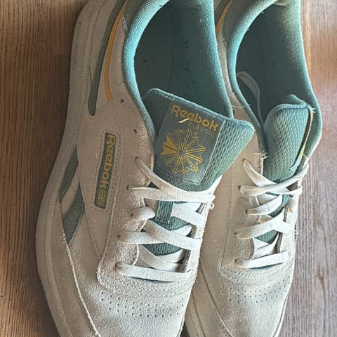 Reebok sneakers i størrelse 45. Skoene er hvide med blå og røde detaljer. Fremstillet i materialer egnet til hverdagsbrug og sport. Meget behagelige at have på fødderne