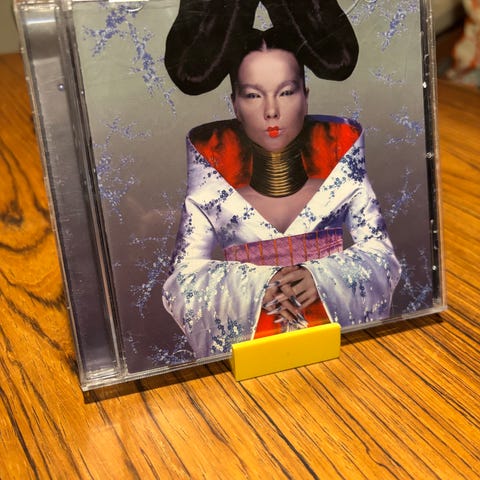 Björk CD Album med rødt cover. Indeholder sange som Earth Intruders, Army of Me, og Declare Independence. CD'en har standard størrelse og leveres i plastikcover med booklet.