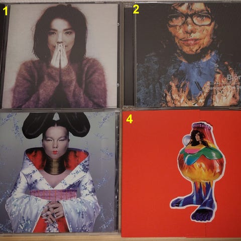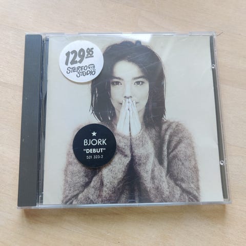 Bjørk Debut Musik CD med coverbillede af en kvinde i sort-hvid, indeholder musiknumre fra albummet Debut. CD'en leveres i standard jewel case med front- og bagcover samt inderside artwork.