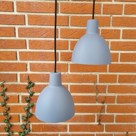 Orginale tolbods lamper store modeller i rå grå