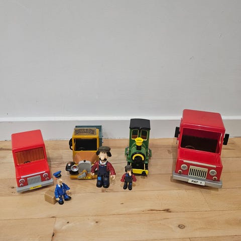 Politibilen kan spille en sang. Postmand Pers bil mangler et hjul.