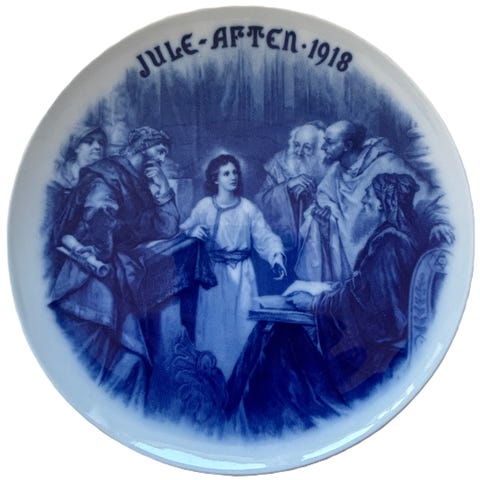 Yderst flot og velhold juleplatte fra den danske/tyske porcelængsfabrik Bucha & Nissen. Motivet heder "Børnenes glæde over juletræet" - og er i et let relief, hvilket giver en meget flot effekt. Det kan desværre være svært at se på et foto.