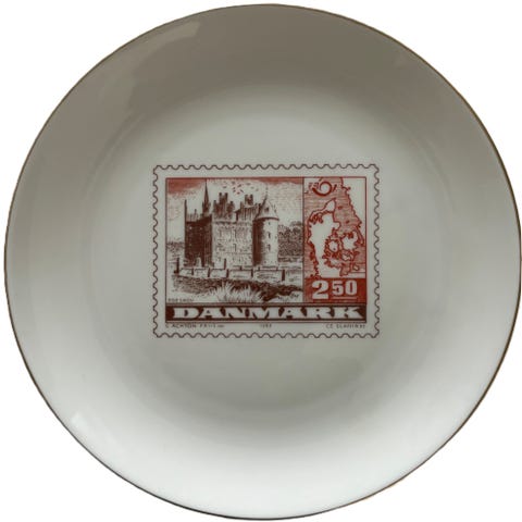 Flot platte fra Haarlev Mølle Kreamik med motiver fra Post & Tele området. Udgivet i forbindelse med postvæsnets 350 års jubilæum.