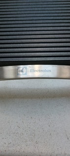 Electrolux bordgrill i sort metal med rillede grillflader. Designet til bordbrug, velegnet til tilberedning af forskellige fødevarer. Materialet sikrer nem rengøring og holdbarhed.