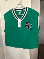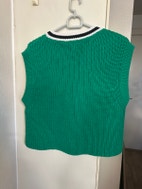 Grøn kort ribbed sporty kort vest i str S med stribet hals kant.