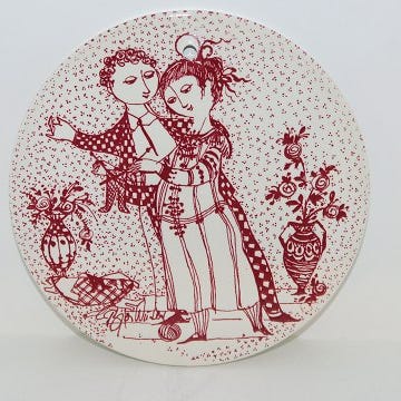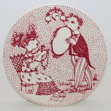Billede 1: Bjørn Wiinblad røde månedsplatter / smørbrikker. Januar - December. Ø15cm. Pr./stk.: 50kr. (12 styk: 500kr.)