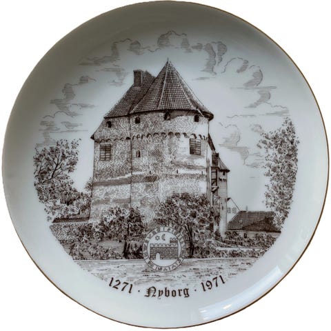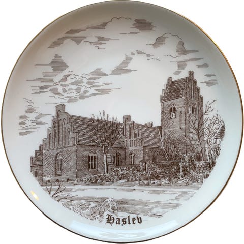Flot hvid platte med Gisselfeld Kloster som motiv.