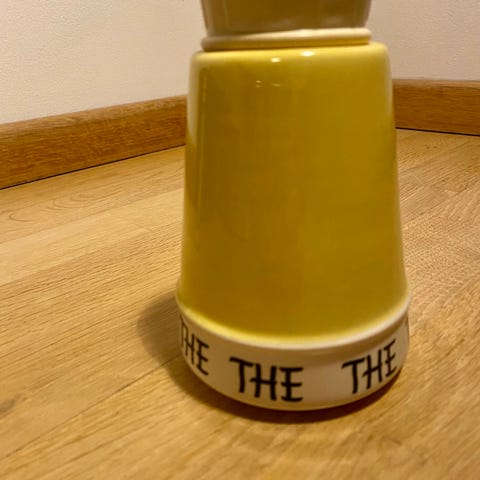 Rörstrand 1249/12 keramik krukke med grøn glasur. Krukken har en firkantet form med dekorative mønstre og en åbning i toppen. Velegnet til brug som dekorativ genstand eller opbevaring.