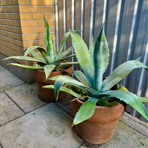 Sisal-Agave fra Tanzania. Sælges med ny potte, købt i Netto. Der er en stor potte og to der er lidt mindre. Der er kun underskål til den ene - men arbejder på sagen!