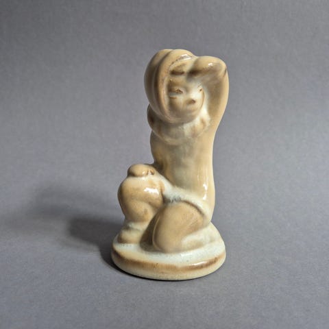 Svensk keramik. Figur af Magnus Ladulås fremstillet af Pia og Per Campbell. Hvem Magnus er kan man se på det lille papskilt der hænger på figuren. Højde 13,5. Diameter 6cm. Flot stand. X