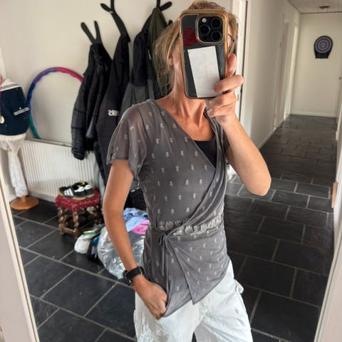 Meget elegant skjorte i loos-fit og med smart grafisk mønster. Brugt få gange. Nypris 1400 kr.