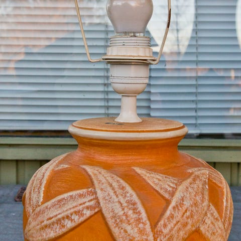 Gammel arkitekt lampe i orange. Mangler bordbeslaget deraf prisen.