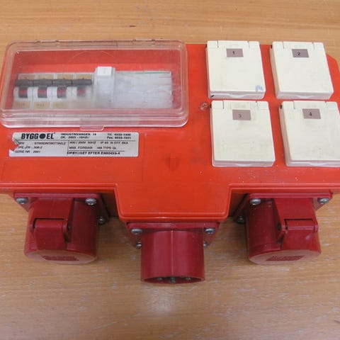 byggestrømstavle, 32 amp.tilslutning 3 stk 400 volt udtag, 2 stk 230 volt udtag
