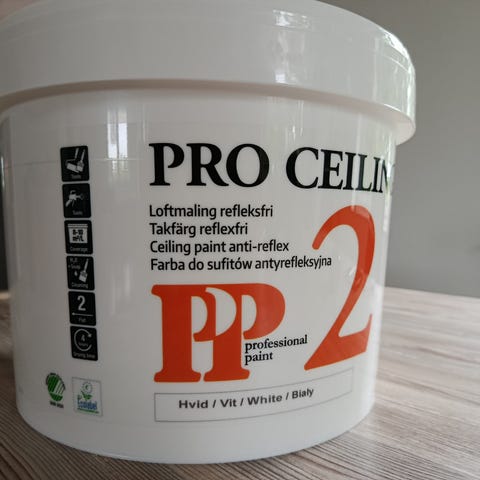 God mat loftmaling der ikke gulner og som står pænt og refleksfri, dækker godt og uden synlige ‘rullespor’