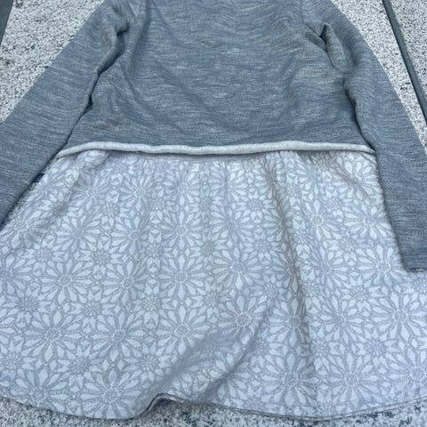 Kjolen har en plet ved ærme kant og forneden ved kant ikke forsøgt fjernet men ikke noget man ser meget