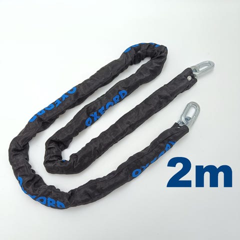 En 10mm kæde i hærdet stål overtrukket med en stofstrømpe for at beskytte det du låser fast.