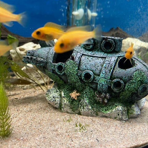 Stort ubådsvrag på hele 74cm i længde, 18cm højt og 10cm bredt. Kun været i akvariet i ca 4 mdr ellers helt nyt, nypris 699,-