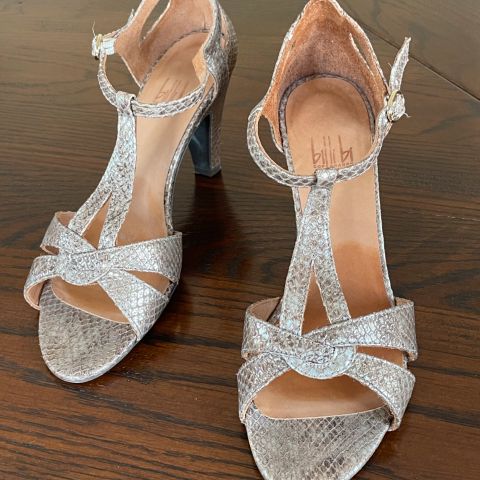 Fine enkle BilliBi sandaler med ruskindsremme.Brugt til et bryllup,ellers ikke brugt.Meget flot stand,står som nye.