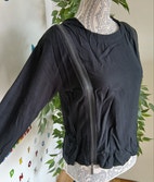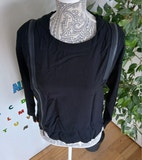 408. Sort hættetrøje med lange ærmer og dekorative lynlåse på skuldrene. Hætten giver et afslappet look, og lynlåsene tilføjer et unikt og stilfuldt element til designet.