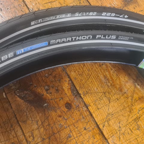 Schwalbe Marathon Plus Tour cykeldæk med en størrelse 700x35c tommer. Dækkene er sorte og designet til at være slidstærke og punkteringsresistente. Egnet til touring og daglig brug på cykel.