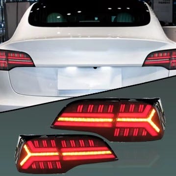 Fin og flot forlygte fra en Tesla 3 sr+ fra 2019