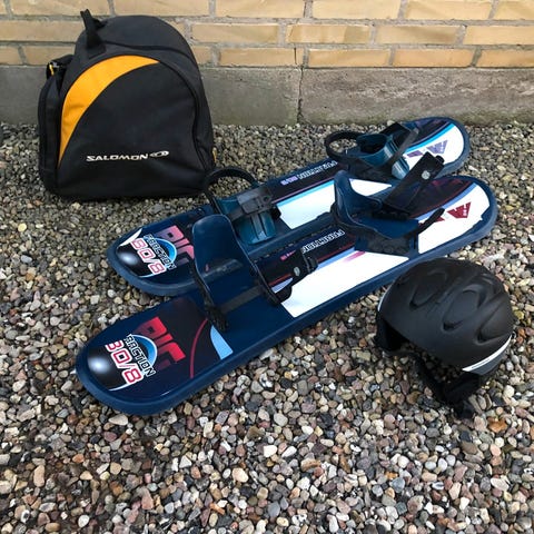 DC Shoes Snowboard sæt bestående af snowboard, bindinger, støvler og goggles. Snowboardet har et mønster i sort, grøn og lilla. Støvlerne er sorte med justerbare snørebånd. Goggles har en gul og sort ramme med spejlglas. Sættet er designet til vintersport og passer til brug på sne.