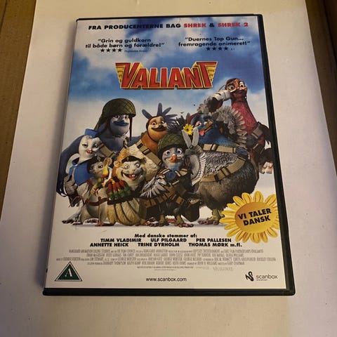 Valiant DVD i dansk version. Animeret film med dansk tale. Produktet indeholder filmen 'Valiant', som er en animationsfilm med dyrekarakterer. DVD'en er velegnet til familier og børn.