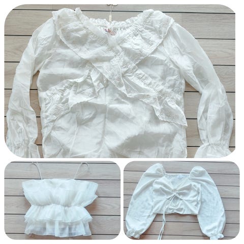 A114. Sæt, Bluse / Nederdel, Azaka, str. M, Beige,