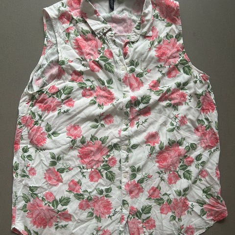 Top, H&M, str. 38, hvid, Bomuld, God men brugt, Fin sommertop med halvlange ærmer. Knapper og en lille brystlomme foran og fint "broderi-mønster" bagpå. Obs har mere tøj til salg se øvrige annoncer eller spørg ved interesse.